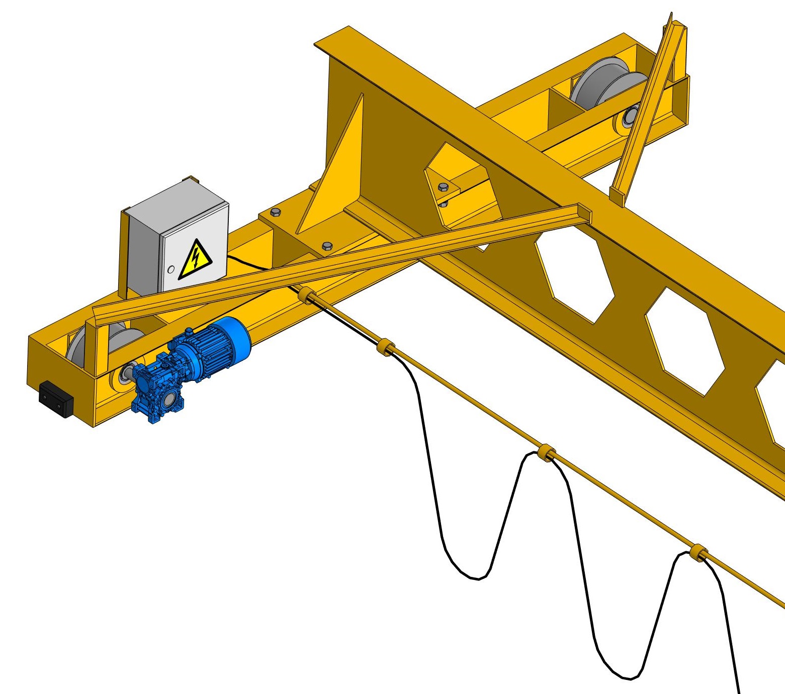 - система питания — кабели, троллейные шины, подвесные гирлянды, распределительные шкафы, инверторы и прочее электрооборудование. Состав оборудования и полную комплектацию кран-балки мы подберем с учетом указанных Вами требований и условий эксплуатации.