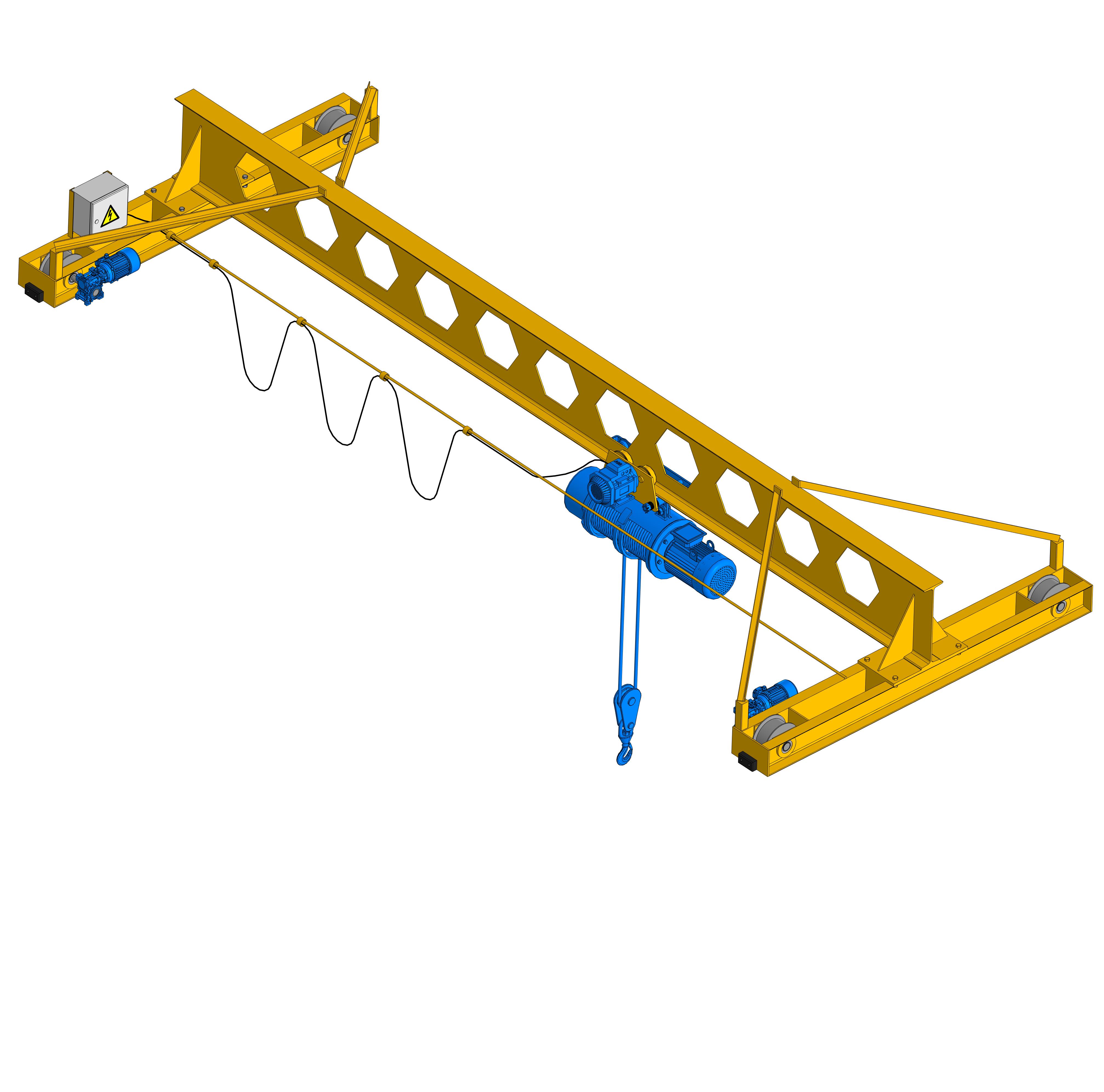- коробчатого типа, типа сварной балки или в случае потребности клиента трубной конструкции пролетной балки — основной несущий элемент конструкции;