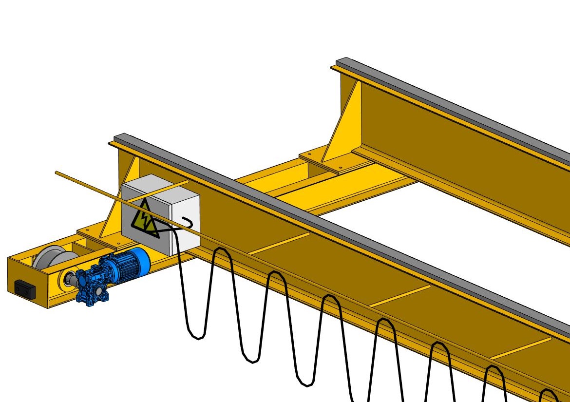 Мостовой электрический двухбалочный кран представляет собой конструкцию выполненную в виде 2 пролетных балок с грузоподъемным механизмом (тельфером, лебедкой). Такой тип крана возможно использовать как в открытых, так и в закрытых помещениях, при разных климатических условиях. Управление краном может осуществляться с подвесного пульта (с пола), при помощи радиоуправления, стационарной или передвижной кабины.
