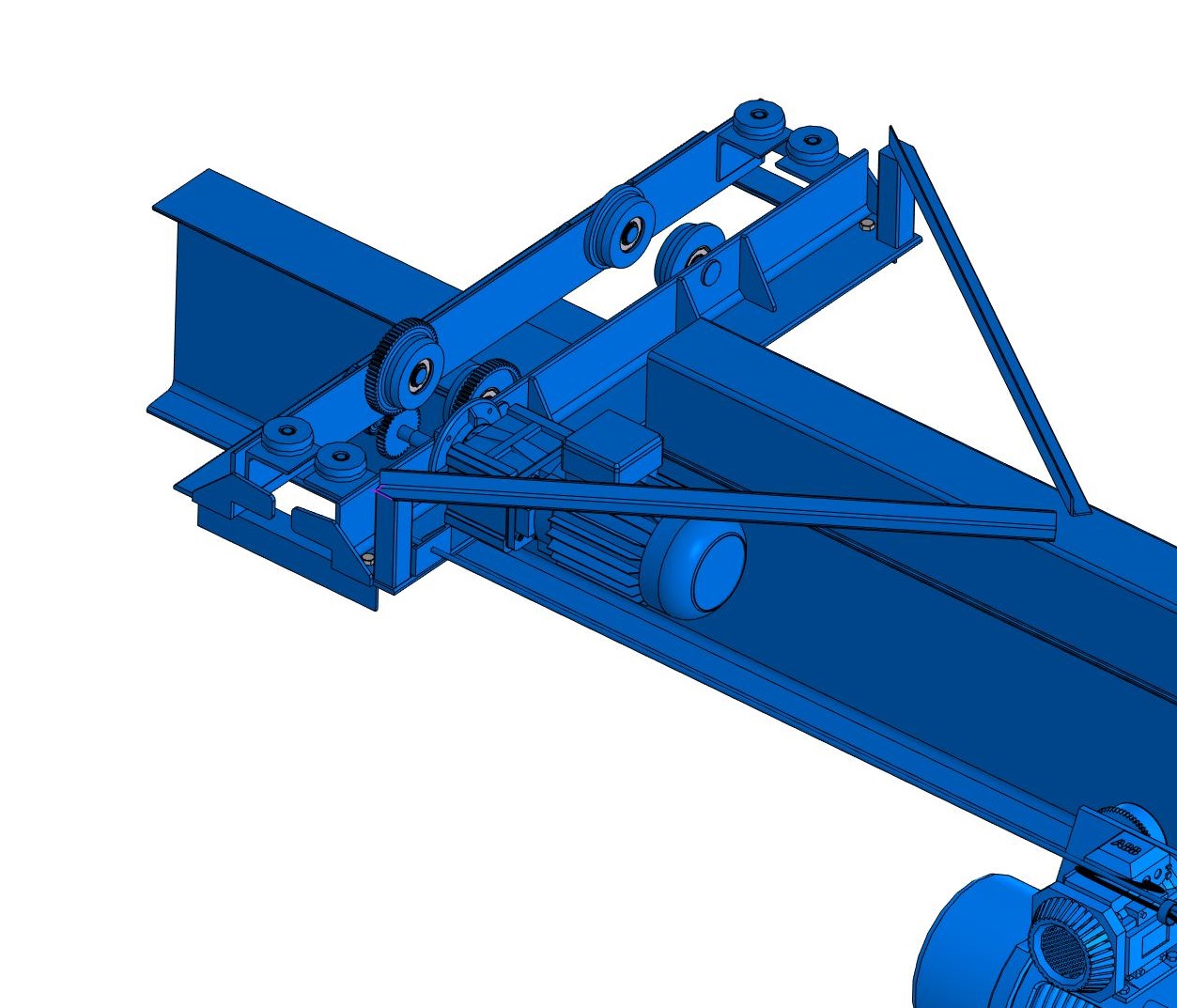 Мостовой однобалочный подвесной электрический кран состоит из моста (пролетного строения) и концевых тележек или балок, количество которых может достигать трех в зависимости от конструкции подкранового пути. Конструкция напрямую зависит от параметров крана: грузоподъемности и длины пролета. К пролетному строению крана подвешивают электрический тельфер. Благодаря подвесной конструкции, кран может иметь консоли, что позволит перемещать груз за пределы подкранового пути. В движение кран приводят несколько электродвигателей с редукторами, питание которых осуществляется от сети 380 Вольт (индивидуально можно заказать 220 Вольт). При необходимости кран возможно оборудовать электродвигателями Немецкого или Болгарского производства.